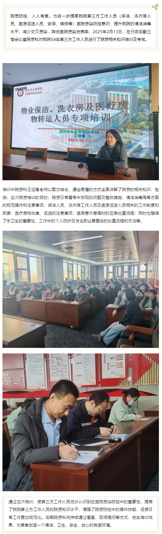 2025年滨州市中医医院院感科“开工第一课” ——第三方工作人员院感相关知识培训及考核