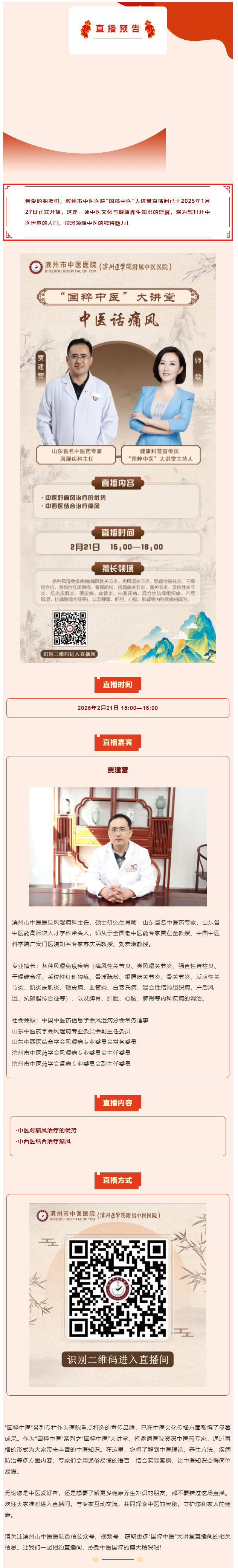 直播预告 | 滨州市中医医院(滨州医学院附属中医医院)“国粹中医”大讲堂第四期 中医话痛风