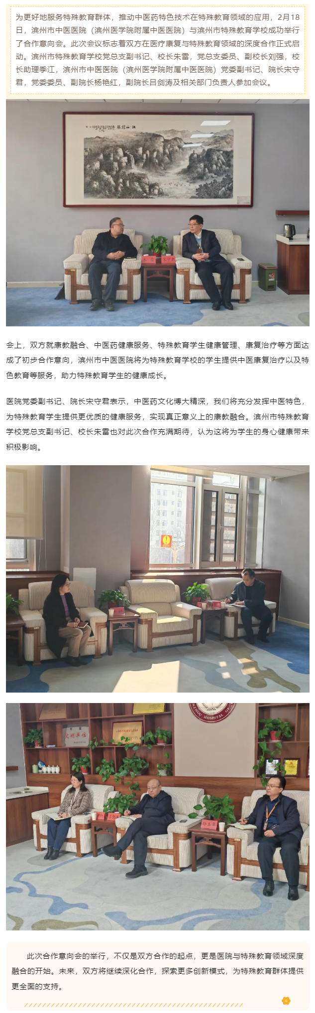 携手共进,关爱特殊群体——滨州市中医医院(滨州医学院附属中医医院)与滨州市特殊教育学校合作意向会圆满举行