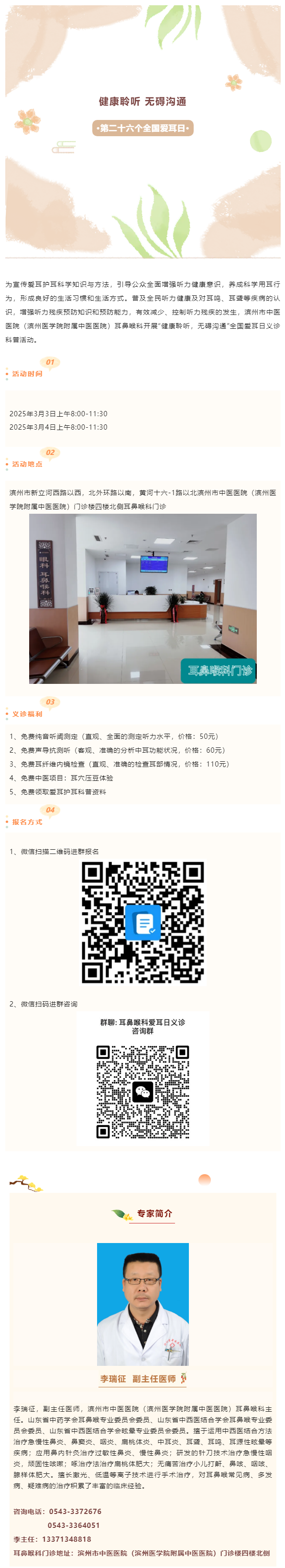 义诊预告 | 健康聆听,无碍沟通——耳鼻喉科将举行全国爱耳日义诊科普活动