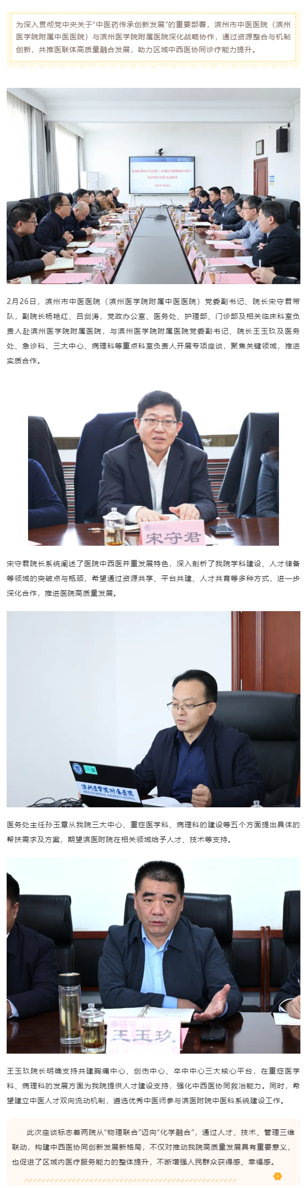 深化院际协作,共筑中西医协同发展新格局——滨州市中医医院与滨州医学院附属医院共商高质量发展路径