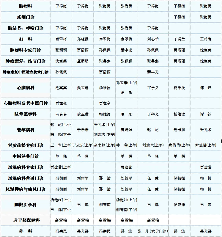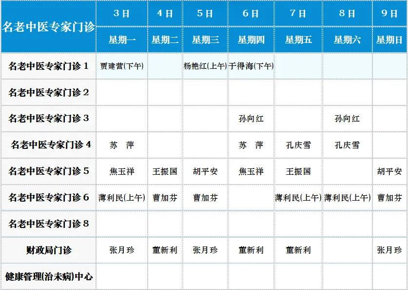 中医专家门诊值班表