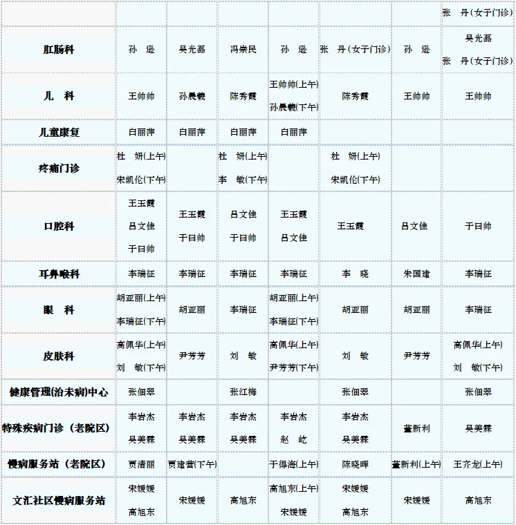 专家门诊值班表