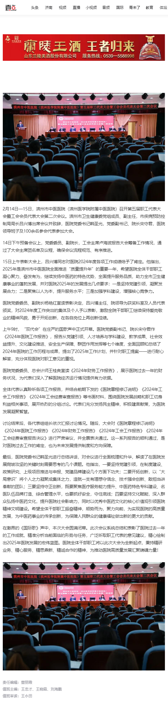 【齐鲁壹点】滨州中医医院召开第五届职工代表大会暨工会会员代表大会二次会议