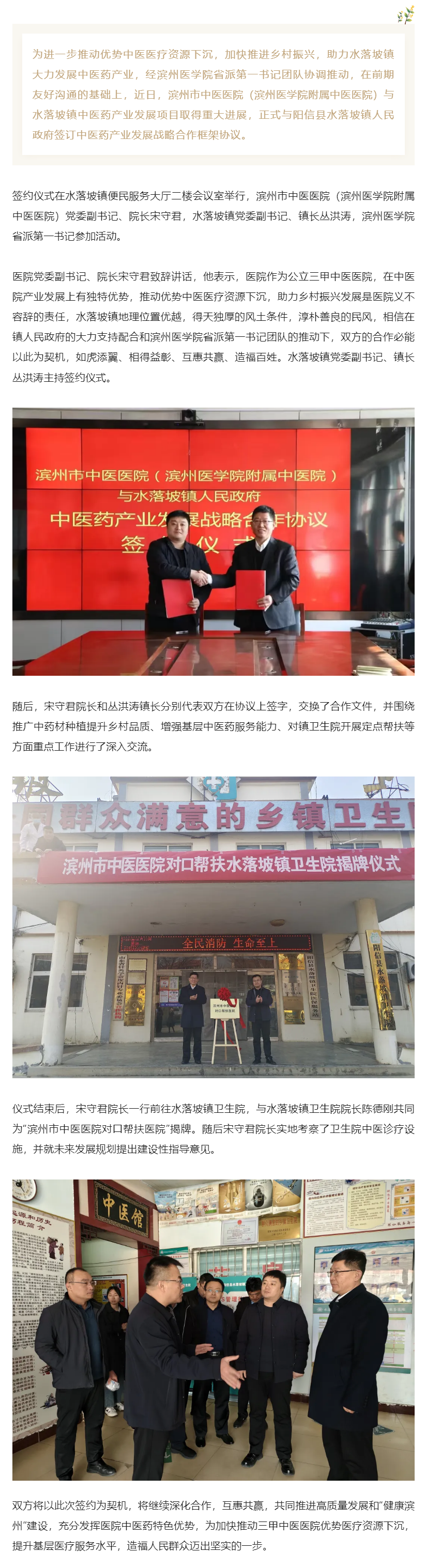 滨州市中医医院与水落坡镇签订中医药产业发展战略合作协议