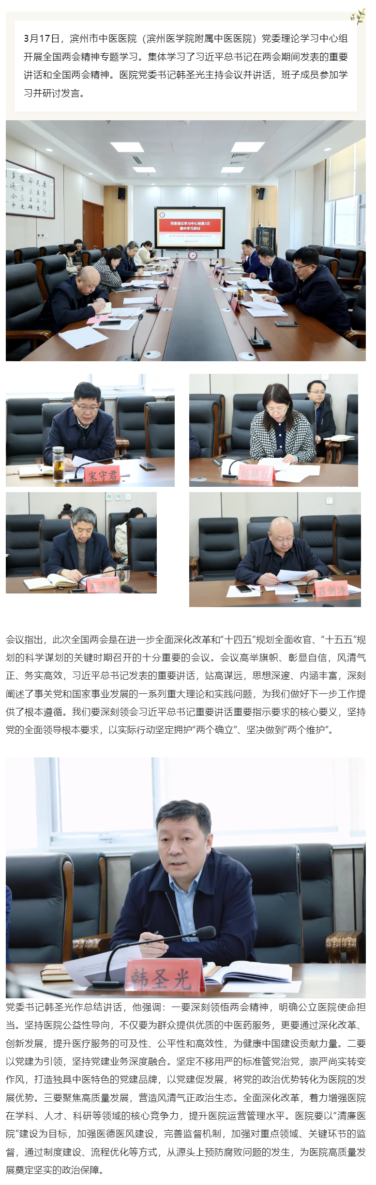 滨州市中医医院(滨州医学院附属中医医院)党委理论学习中心组开展全国两会精神专题学习