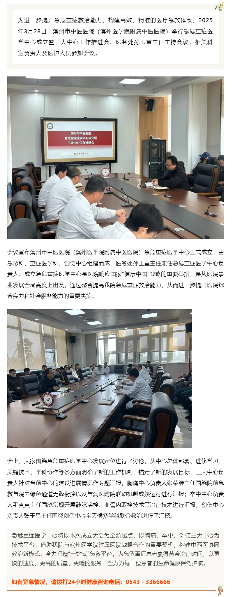 协同发力,生命护航 | 滨州市中医医院(滨州医学院附属中医医院)急危重症医学中心正式成立