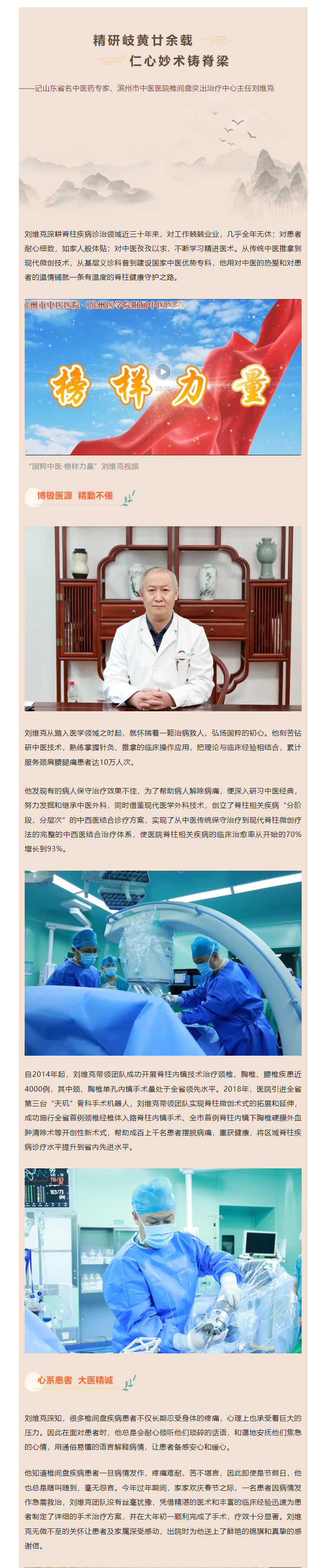 国粹中医·榜样力量 | 精研岐黄廿余载 仁心妙术铸脊梁——记山东省名中医药专家、滨州市中医医院椎间盘突出治疗中心主任刘维克
