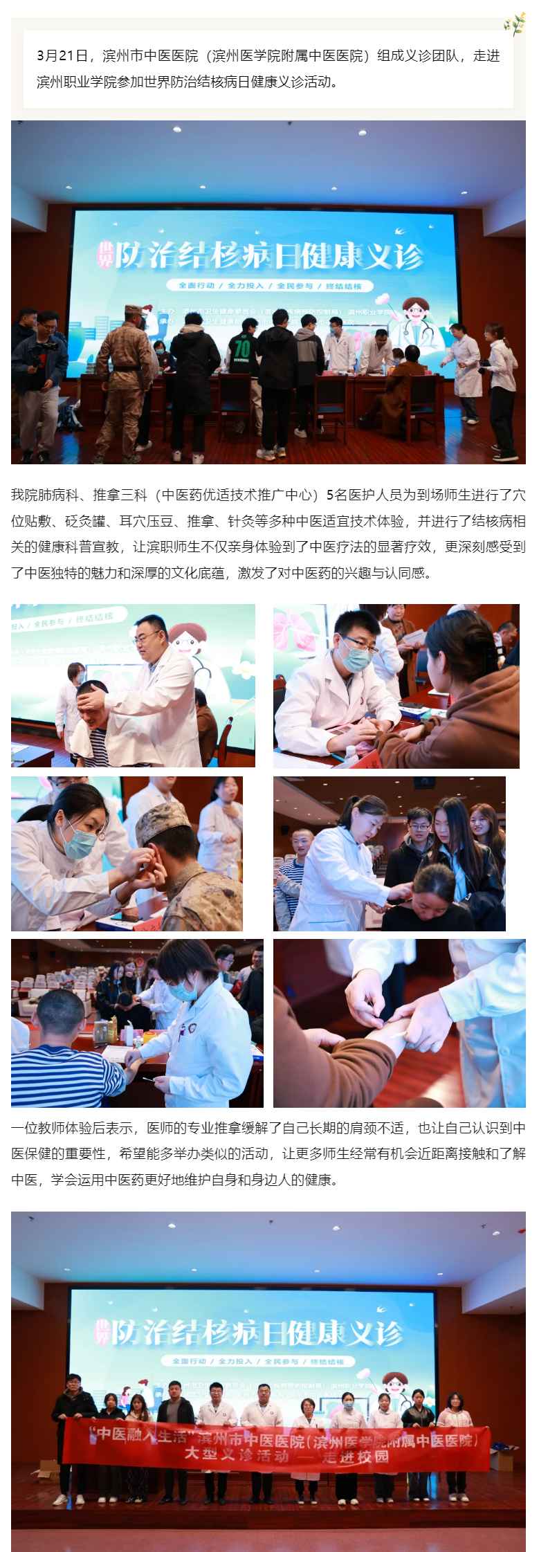 滨州市中医医院医护人员走进滨州职业学院参加世界防治结核病日健康义诊活动