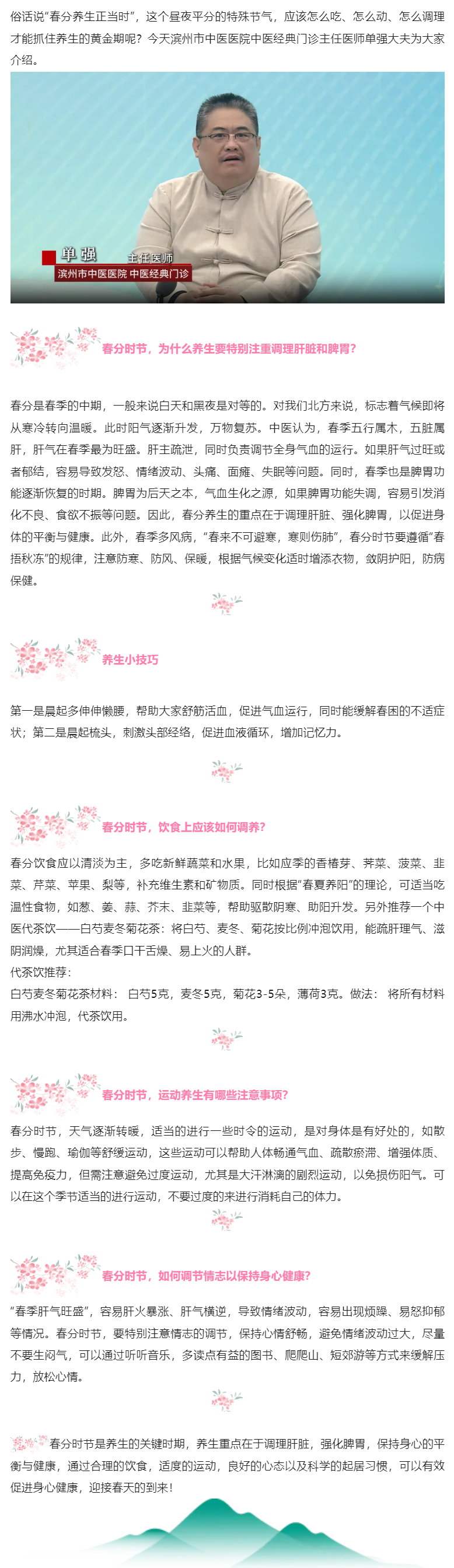 春分养生正当时 ——滨州市中医医院(滨州医学院附属中医医院)中医经典门诊单强主任医师做客健康诊聊室