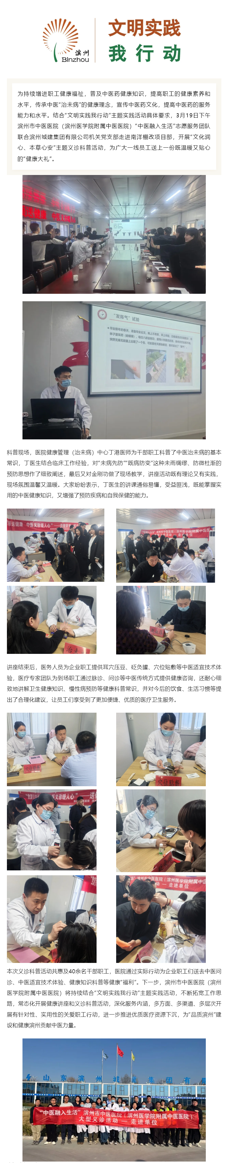 中医融入生活 | 滨州市中医医院(滨州医学院附属中医医院)走进滨州城建集团有限公司开展义诊科普活动