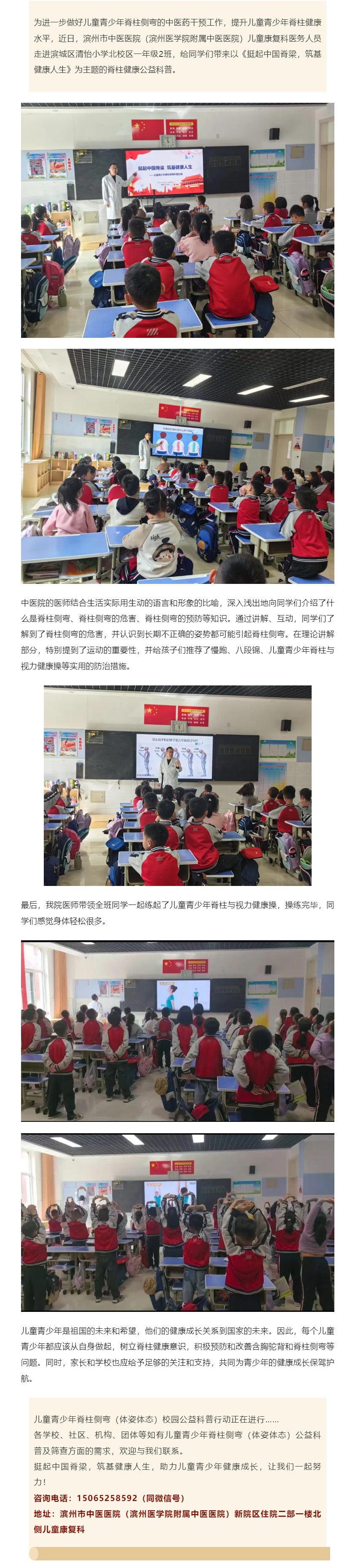 滨州市中医医院(滨州医学院附属中医医院)儿童青少年脊柱侧弯(体姿体态)校园公益科普行动第二十二站—走进滨城区清怡小学北校区