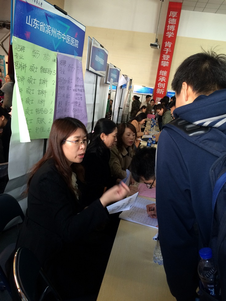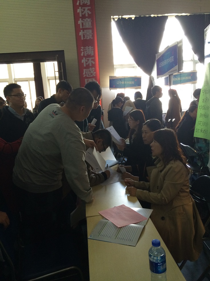 2016年我院以“解放思想,转变观念,创新途径,拓宽渠道”为引进人才指导思想,积极深入高校进行校园现场招聘。2016年4月7日由分管人事工作的副院长杨艳红同志带队一行三人参加了辽宁中医药大学2016年毕业生春季大型供需见面会。共收到符合我院招聘计划有意向毕业生简历72份,均为硕士研究生。