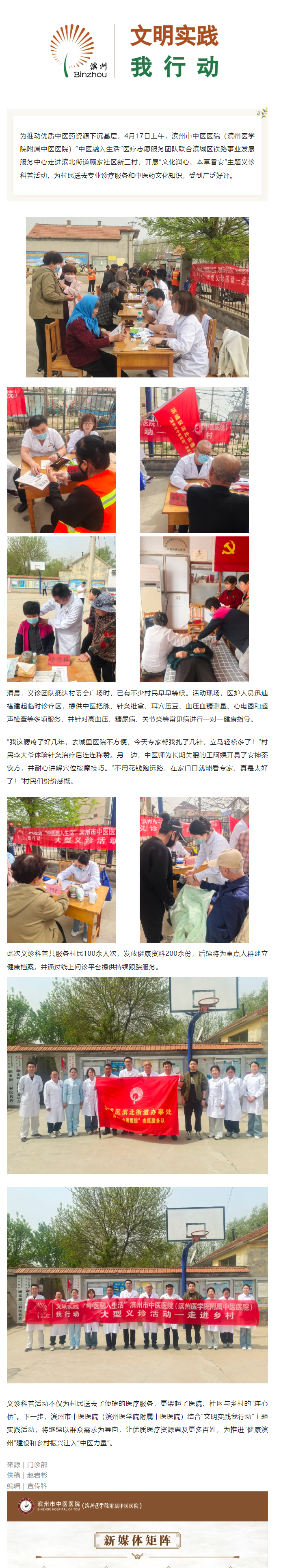 中医融入生活 | 滨州市中医医院(滨州医学院附属中医医院)走进滨北街道顾家社区新三村开展义诊科普活动