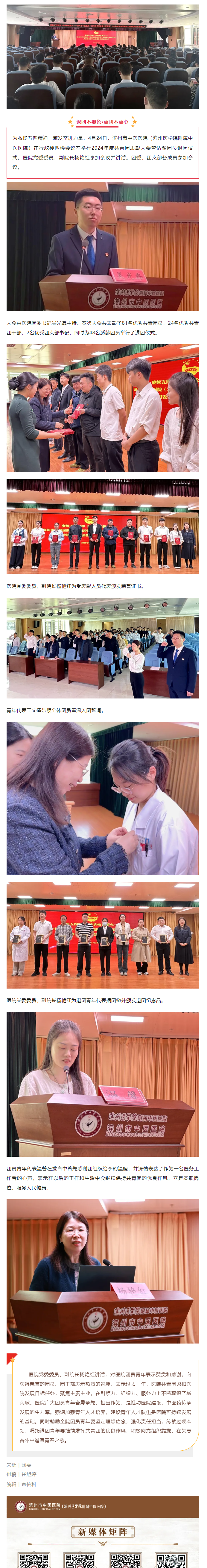 赓续五四精神 传承岐黄薪火——滨州市中医医院(滨州医学院附属中医医院)2024年度共青团表彰大会暨适龄团员退团仪式圆满完成