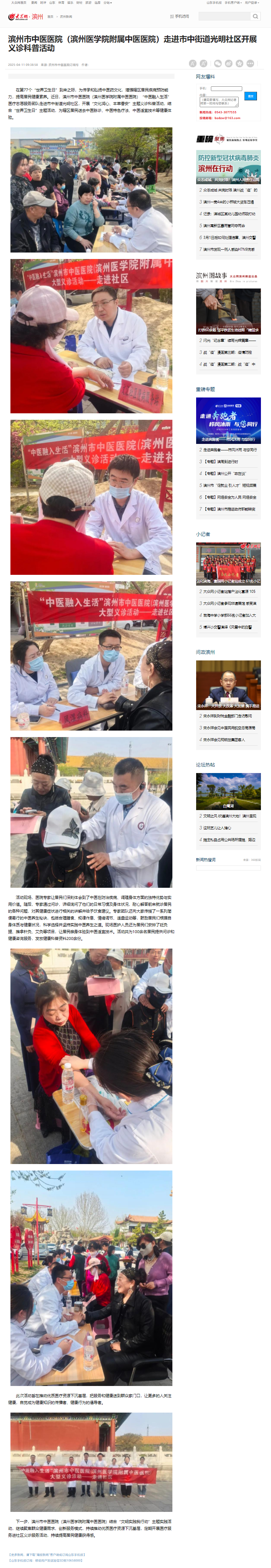 【大众网】滨州市中医医院(滨州医学院附属中医医院)走进市中街道光明社区开展义诊科普活动