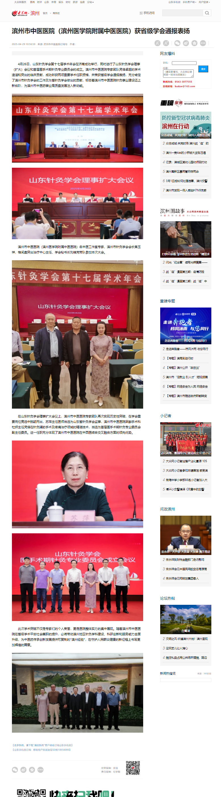 【大众网】滨州市中医医院(滨州医学院附属中医医院)获省级学会通报表扬