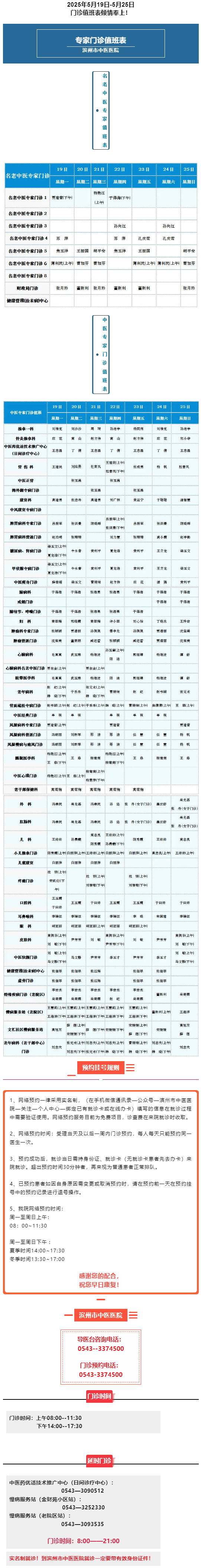滨州市中医医院(滨州医学院附属中医医院)2025年5月19日-5月25日门诊值班表