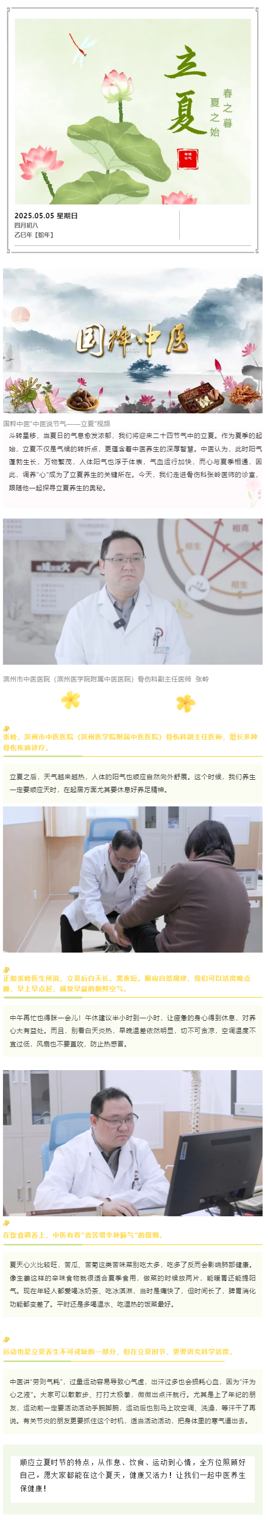 国粹中医·节气养生 | 中医说节气——立夏 滨州市中医医院(滨州医学院附属中医医院)骨伤科副主任医师 张岭