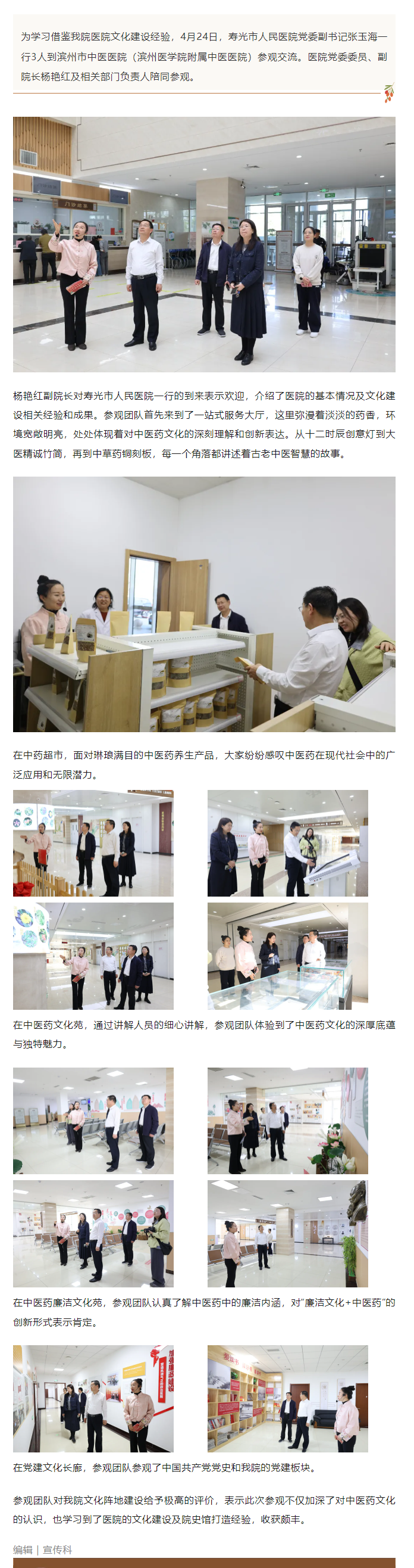 寿光市人民医院党委副书记张玉海一行来我院参观交流