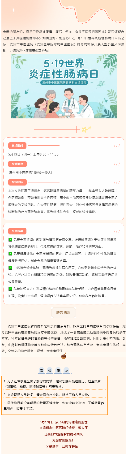 义诊预告 | “5·19世界炎症性肠病日”滨州市中医医院脾胃病科义诊来啦!