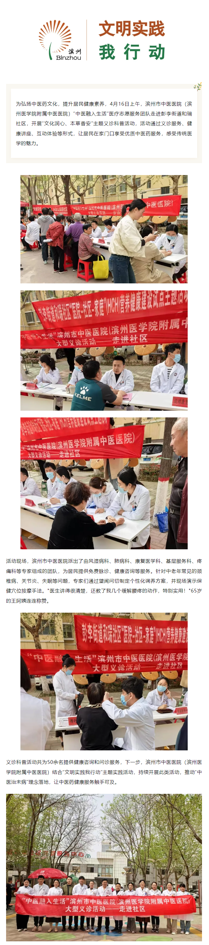 中医融入生活 | 滨州市中医医院(滨州医学院附属中医医院)走进彭李街道和瑞社区开展义诊科普活动