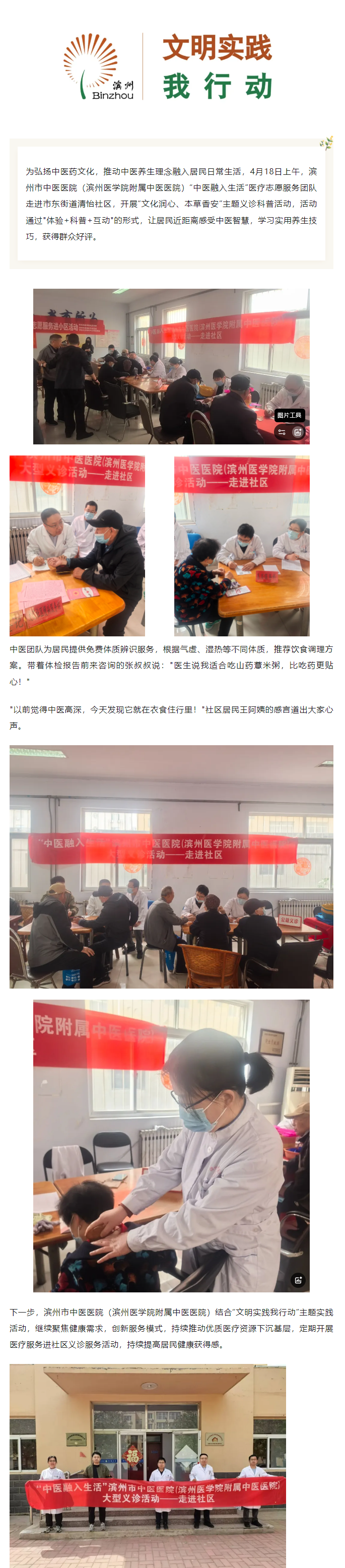 中医融入生活 | 滨州市中医医院(滨州医学院附属中医医院)走进市东街道清怡社区开展义诊科普活动
