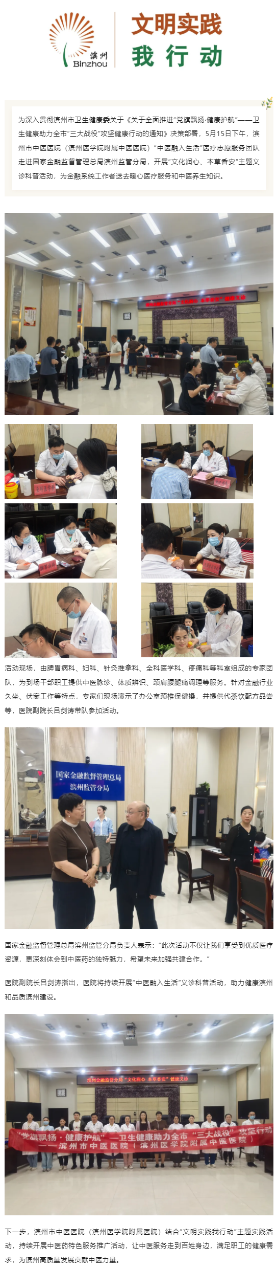 中医融入生活丨党旗飘扬 健康护航——滨州市中医医院(滨州医学院附属中医医院)走进国家金融监督管理总局滨州监管分局开展义诊科普活动