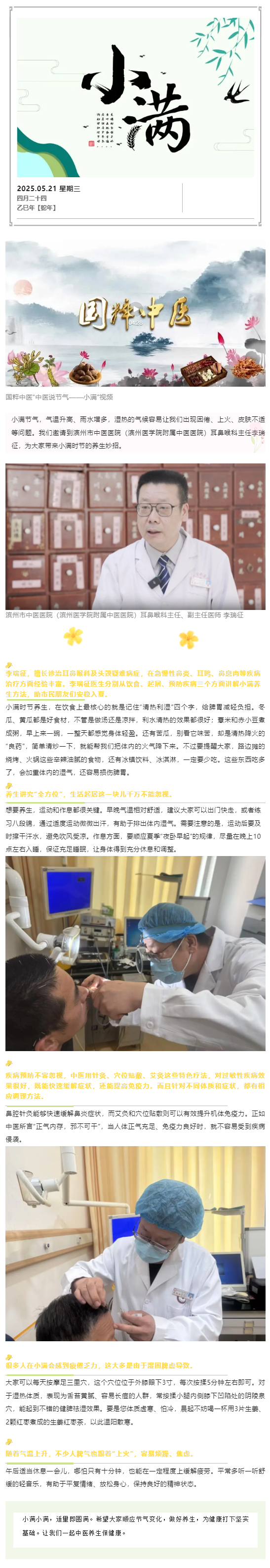 国粹中医·节气养生 | 中医说节气——小满 滨州市中医医院(滨州医学院附属中医医院)耳鼻喉科主任、副主任医师 李瑞征