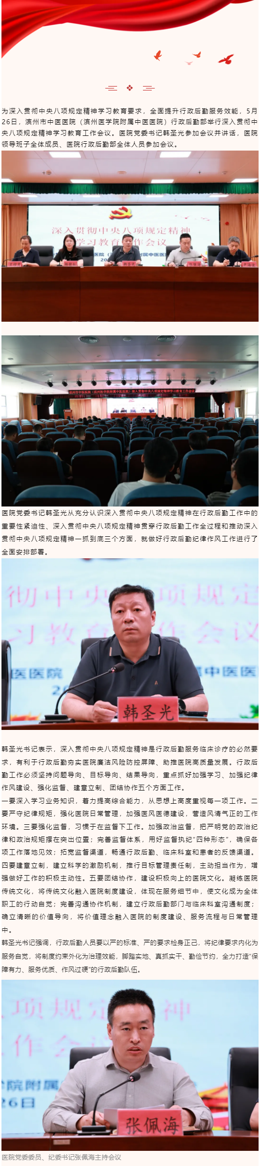 滨州市中医医院行政后勤部举行深入贯彻中央八项规定精神学习教育工作会议