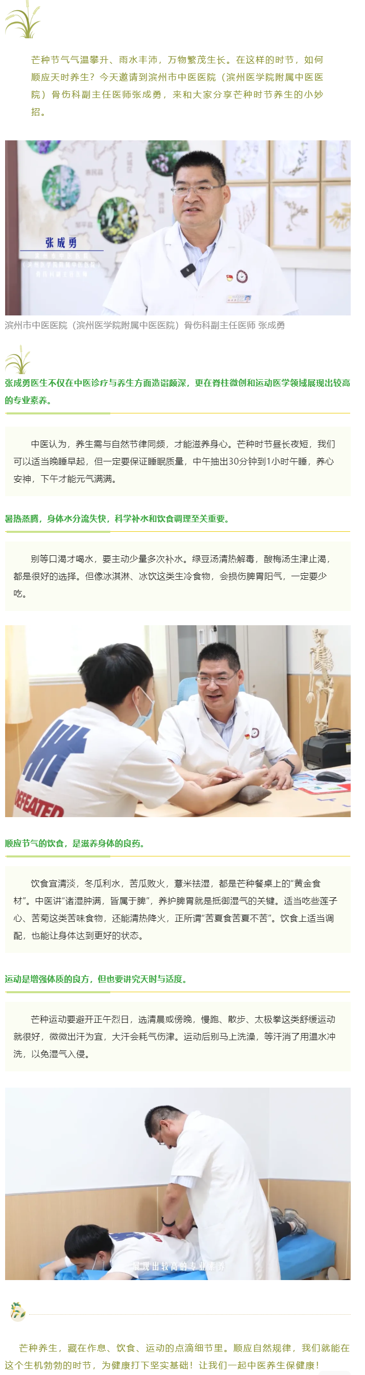 国粹中医·节气养生 | 中医说节气——芒种 滨州市中医医院(滨州医学院附属中医医院)骨伤科副主任医师 张成勇