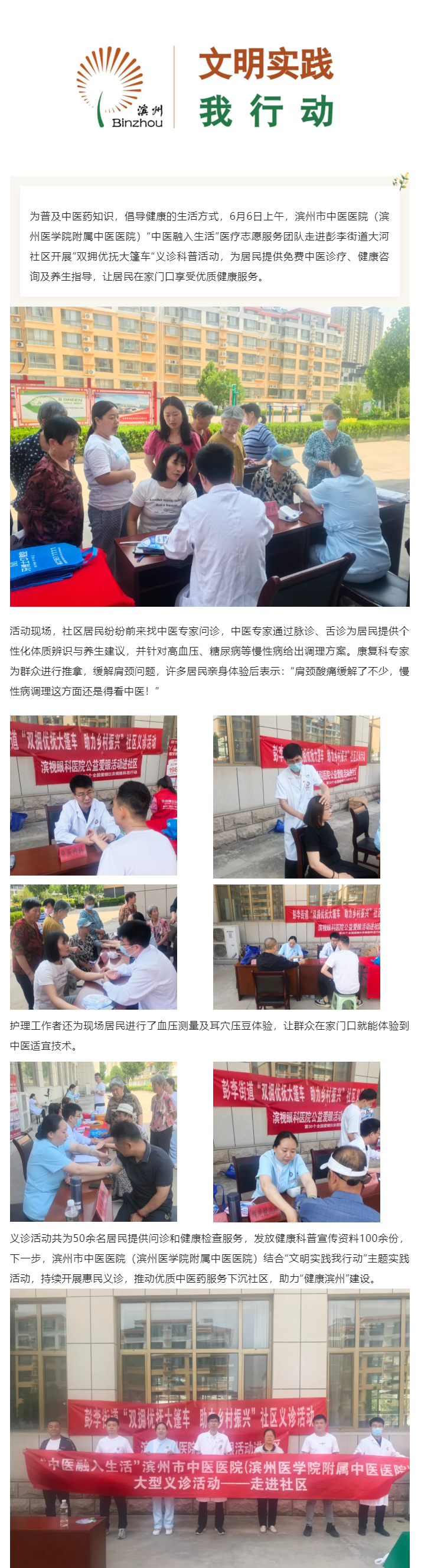 中医融入生活丨滨州市中医医院(滨州医学院附属中医医院)走进彭李街道大河社区开展义诊科普活动