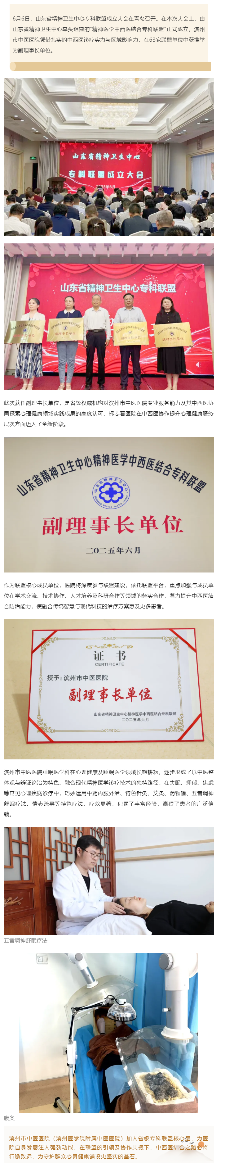 喜报 | 滨州市中医医院(滨州医学院附属中医医院)荣膺山东省精神医学中西医结合专科联盟副理事长单位