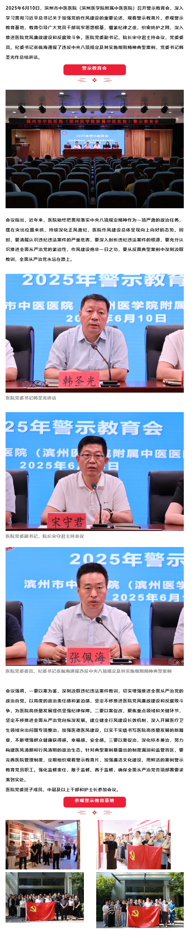 滨州市中医医院(滨州医学院附属中医医院)召开警示教育会,以案为鉴筑牢纪律防线