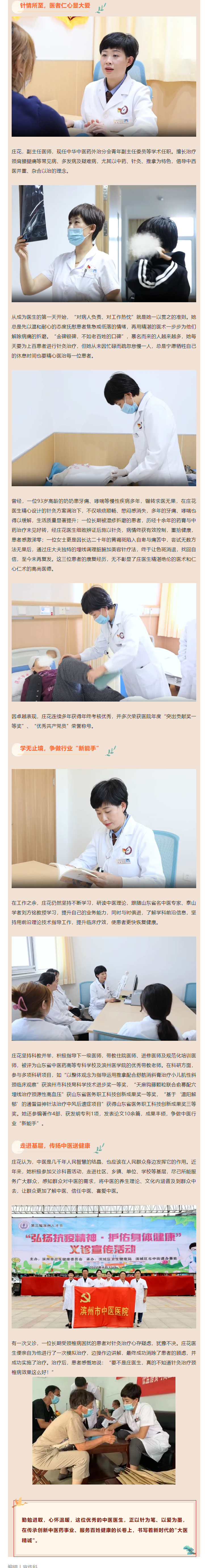 国粹中医·榜样力量 | 银针妙手解病痛,医者厚德暖患心——记滨州市中医医院针灸推拿科副主任、副主任医师庄花