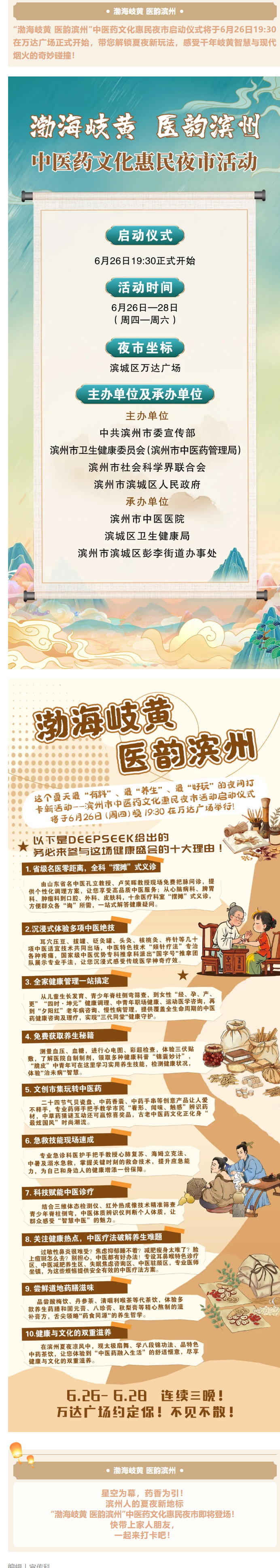 解锁滨州夏夜新体验!“渤海岐黄 医韵滨州”中医药文化惠民夜市即将开市,你,准备好了吗?