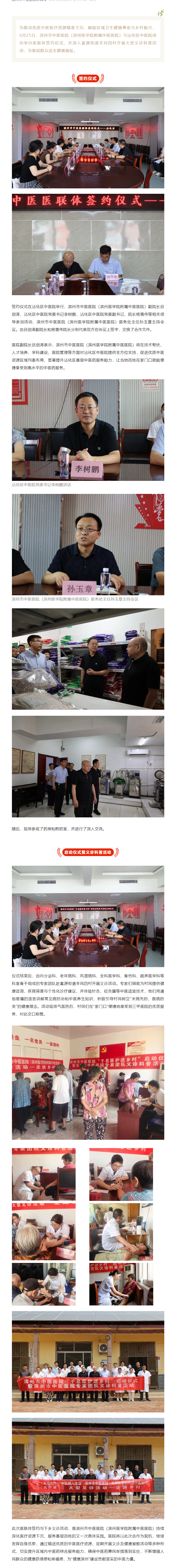 滨州市中医医联体签约仪式、滨州市中医医院“千名医护进乡村”派驻沾化区中医院启动仪式暨义诊科普活动成功举办