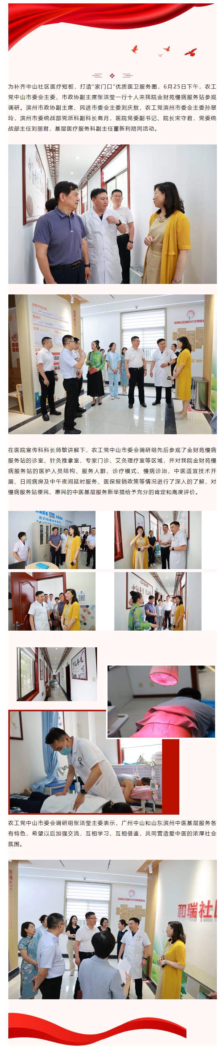 农工党中山市委会一行来滨州市中医医院金财苑社区门诊参观调研