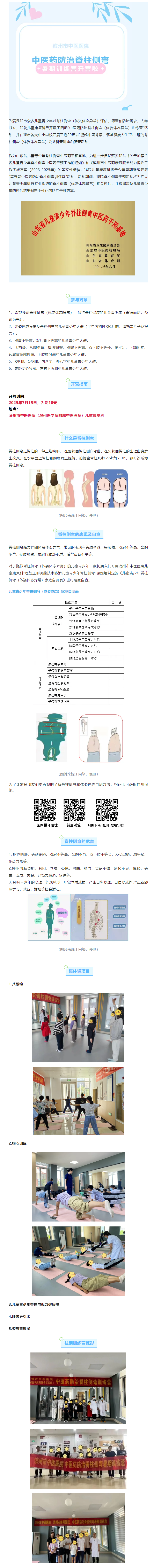 守护儿童脊柱健康 | 滨州市中医医院(滨州医学院附属中医医院)中医药防治脊柱侧弯(体姿体态异常)暑期训练营开营啦!