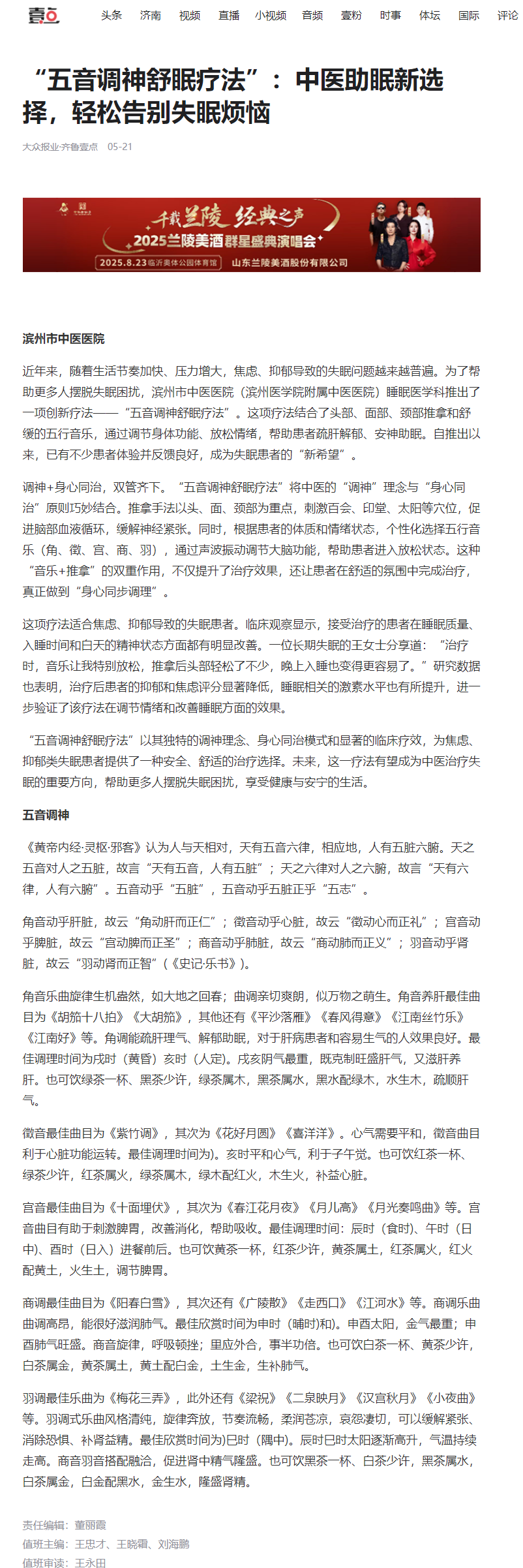 【齐鲁壹点】“五音调神舒眠疗法”:中医助眠新选择,轻松告别失眠烦恼