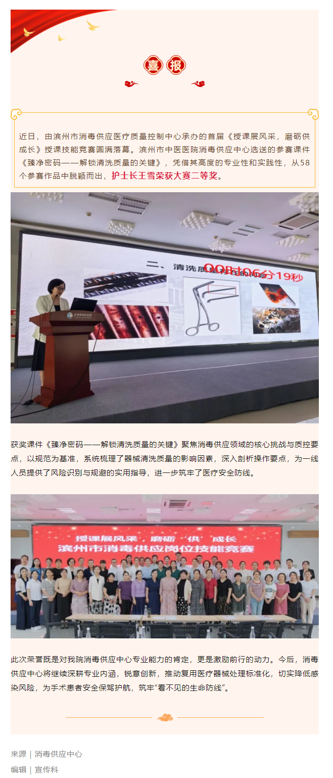 喜报 | 滨州市中医医院消毒供应中心课件荣获全市授课技能竞赛二等奖