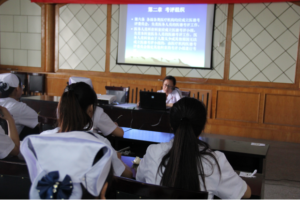 本次培训由我院医务科燕玉敏,感染科张立英主任,护理部张立芳主任,内科陈晓晖大夫等担任主讲人,分别对医院的规章制度、医德医风、医疗核心制度、院感知识、护理基本知识、病历书写等方面进行现场培训指导,内容丰富,严肃认真,切合实际,让学生们深深体会到医院严谨扎实的工作作风和大医精诚的职业精神。