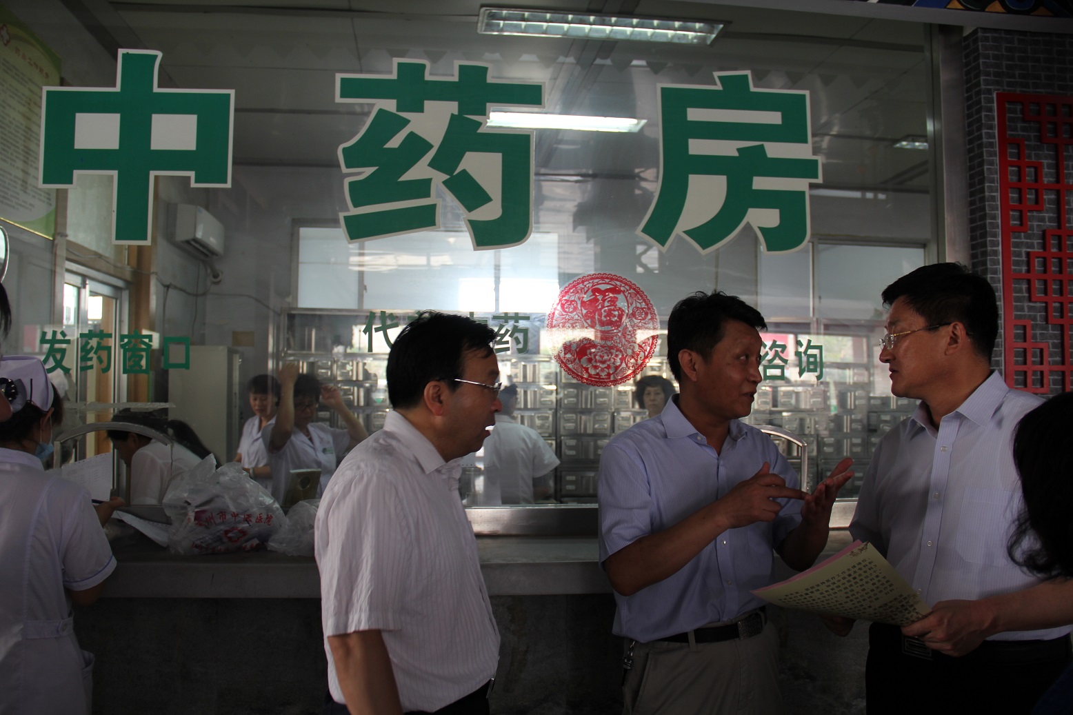 随后,张凯市长来到中药房,视察了我院药品价格的调整情况。
