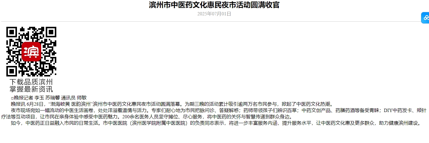 【品质滨州】滨州市中医药文化惠民夜市活动圆满收官