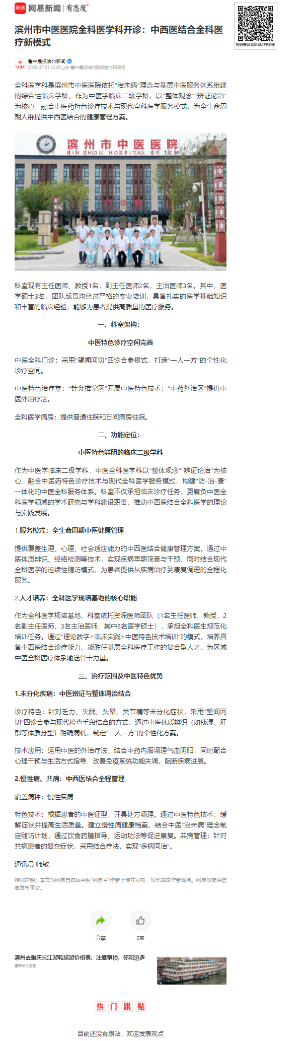 【鲁中晨报滨州新闻】滨州市中医医院全科医学科开诊:中西医结合全科医疗新模式