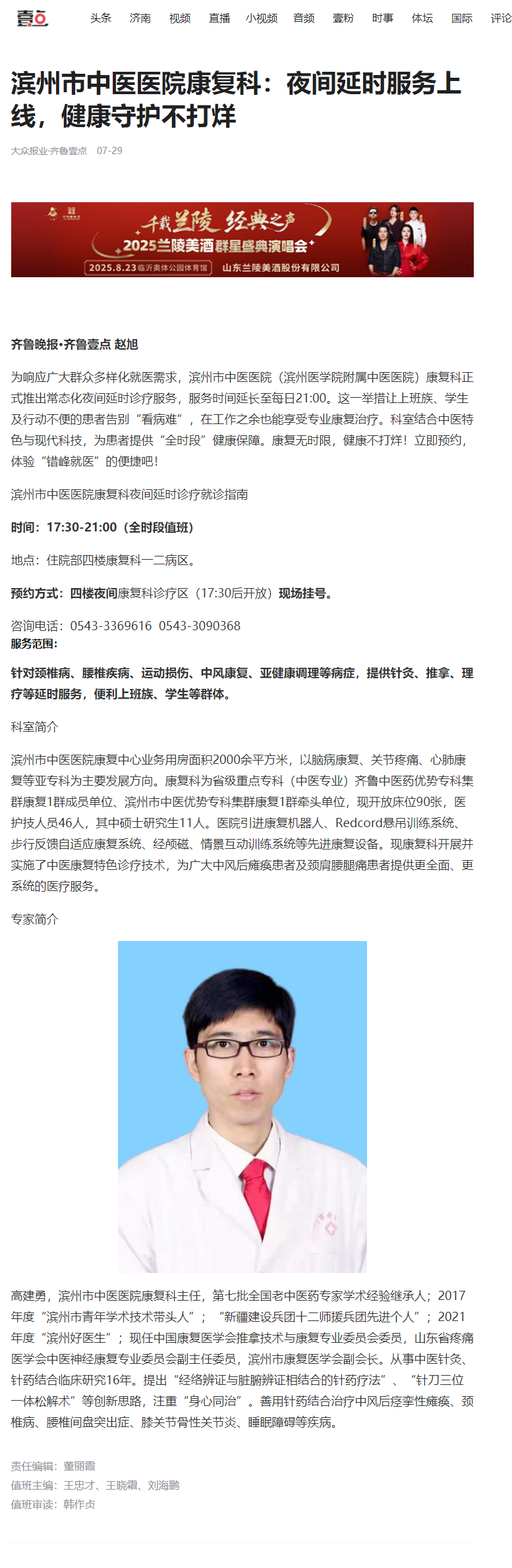 【齐鲁壹点】滨州市中医医院康复科:夜间延时服务上线,健康守护不打烊