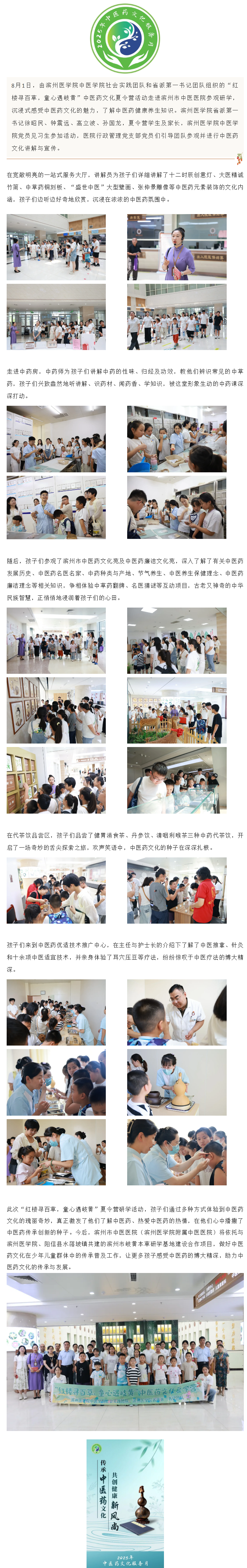 滨州医学院中医学院社会实践团队和省派第一书记团队组织“红楼寻百草,童心遇岐黄”中医药文化夏令营走进滨州市中医医院