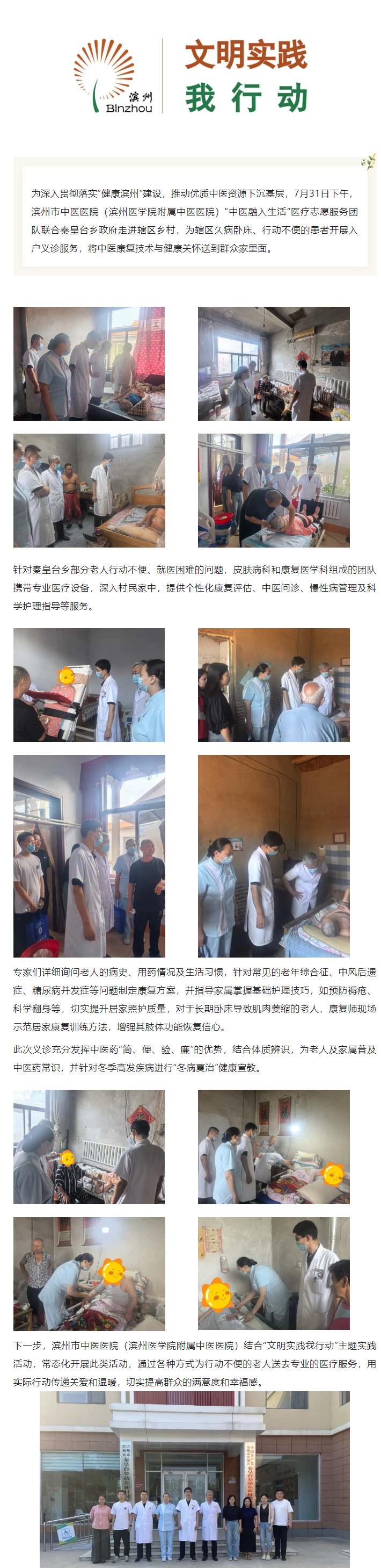 中医融入生活 | 滨州市中医医院(滨州医学院附属中医医院)医疗志愿服务团队走进秦皇台乡开展“送医上门”活动