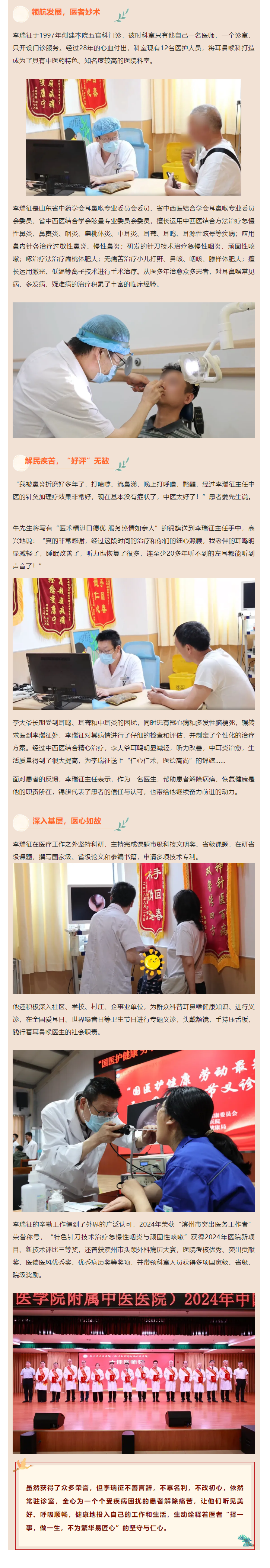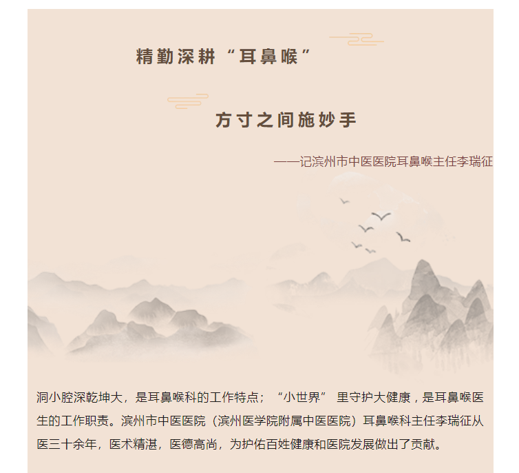 国粹中医·榜样力量 | 精勤深耕“耳鼻喉”,方寸之间施妙手——记滨州市中医医院耳鼻喉科主任、副主任医师李瑞征