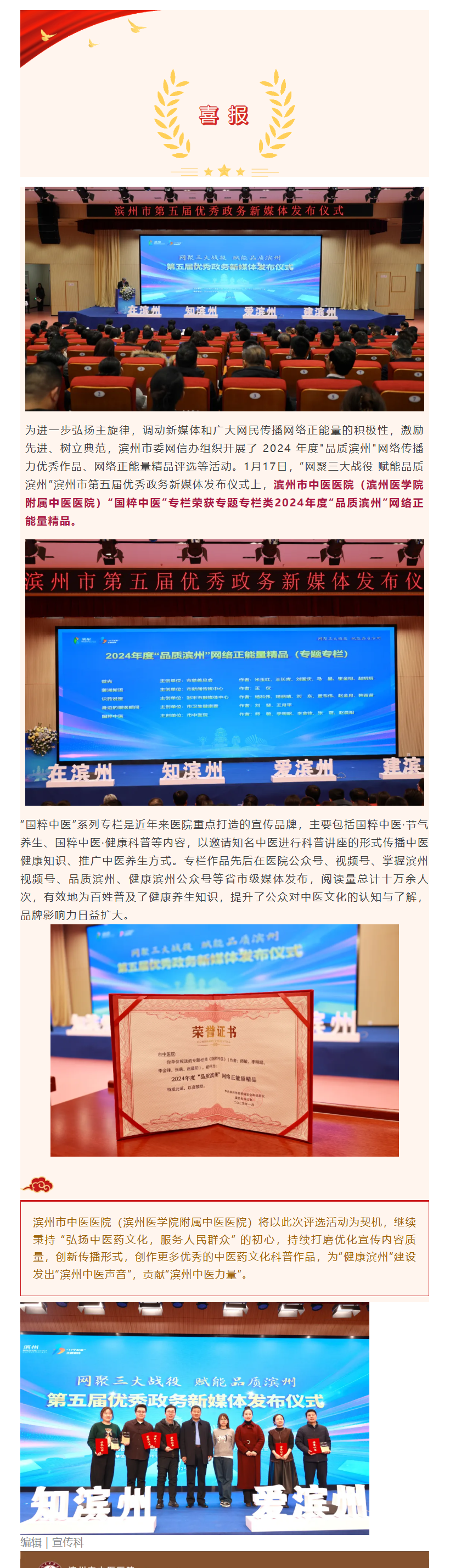 喜报 | 滨州市中医医院“国粹中医”专题栏目荣获2024年度 “品质滨州”网络正能量精品